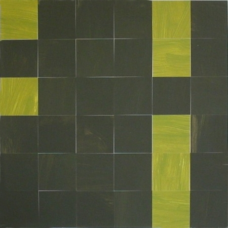 Collage mit farbig gefassten Papierquadraten, 36 x 36 cm, 24 Arbeiten 1998