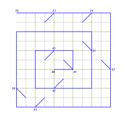 Primzahlen: kurze Diagonallinien