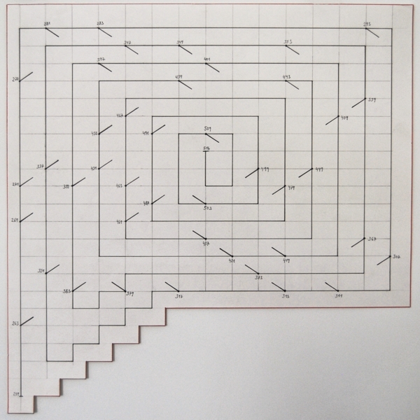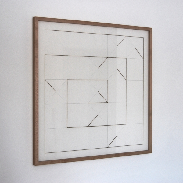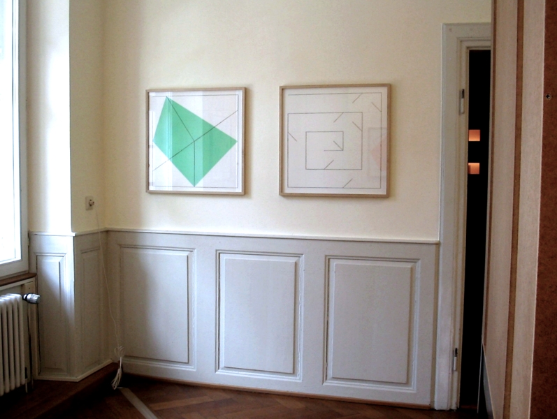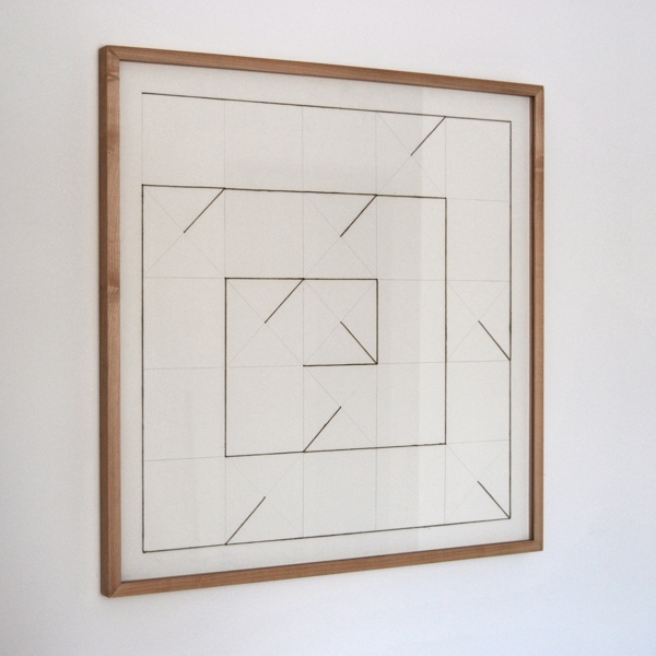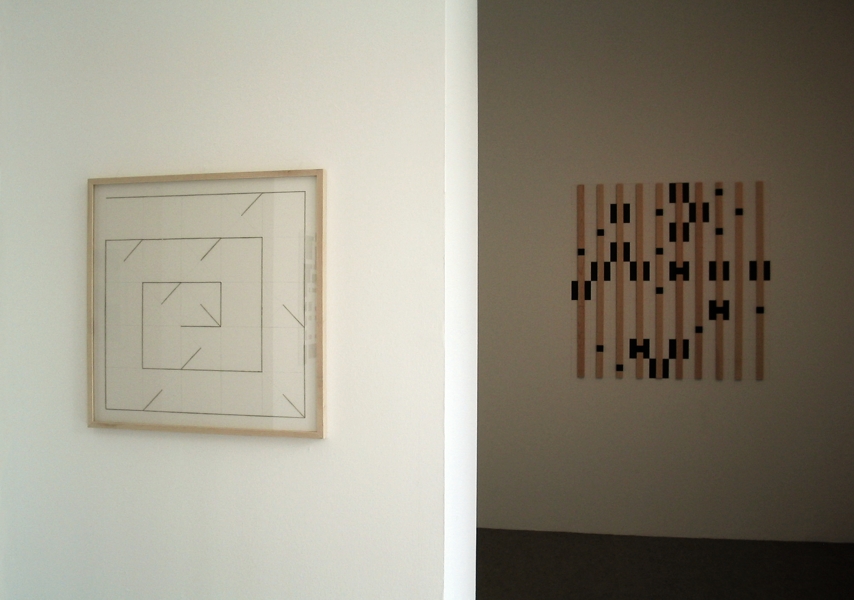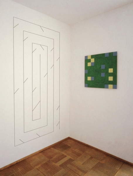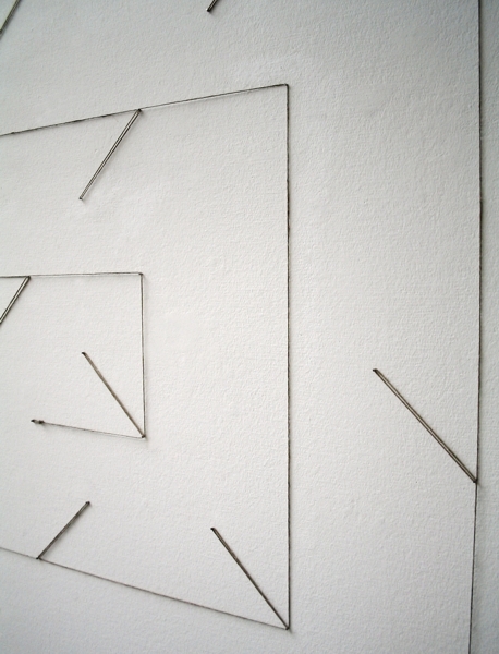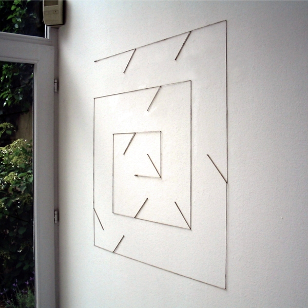 Installationen im Rahmen und als Wandarbeit mit Hanfschnüren und Nägeln, sowie als graphische und malerische Arbeiten, verschiedene Größen, um 2000