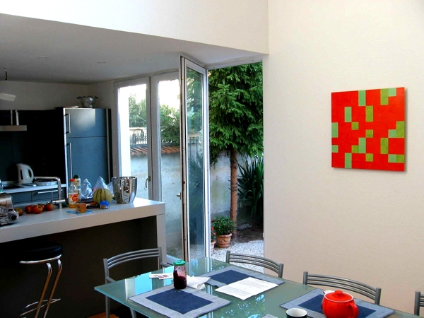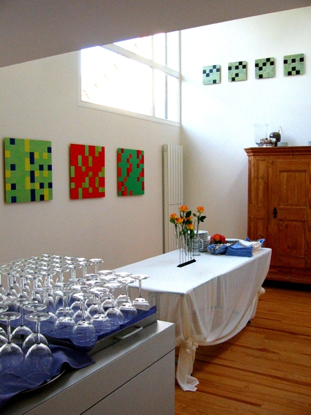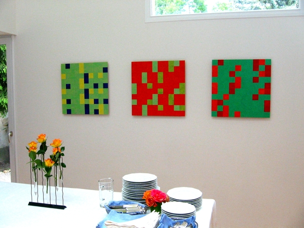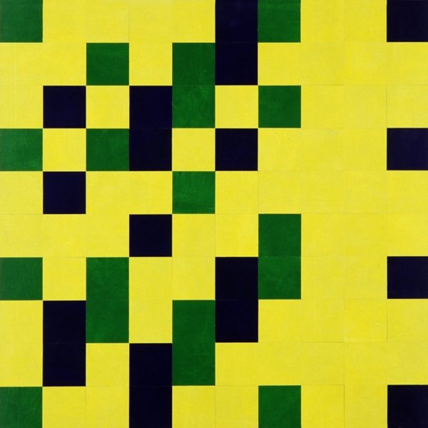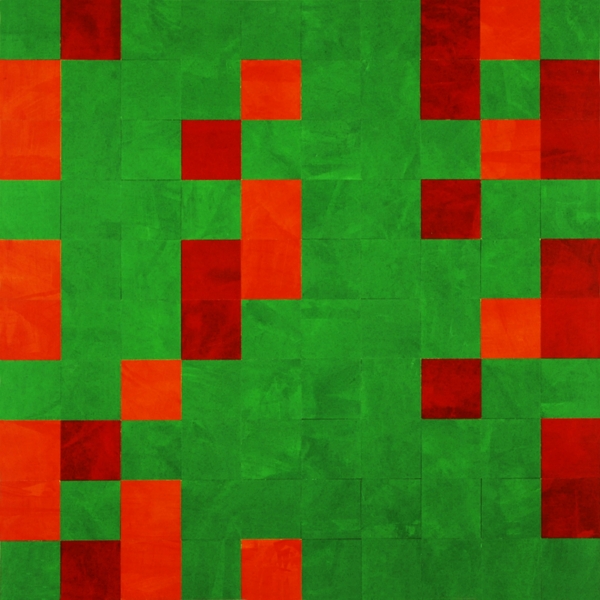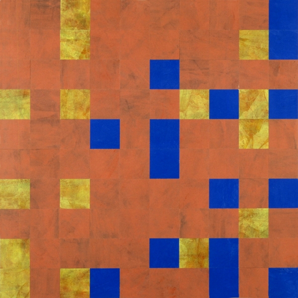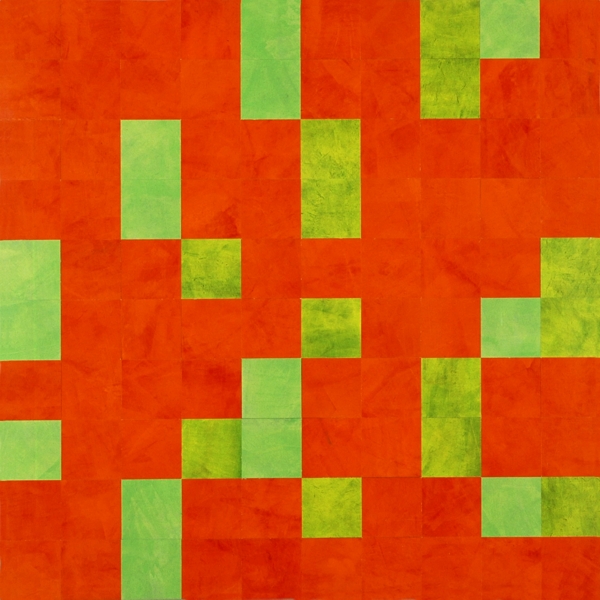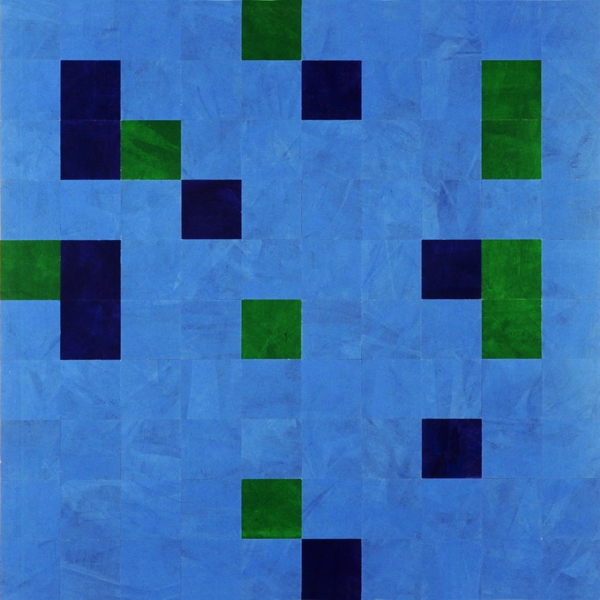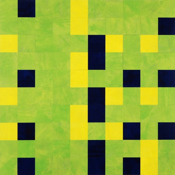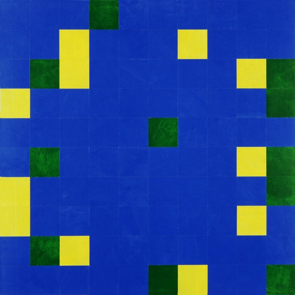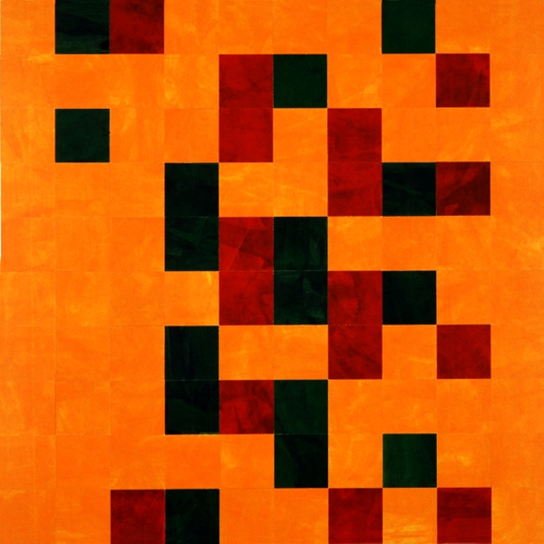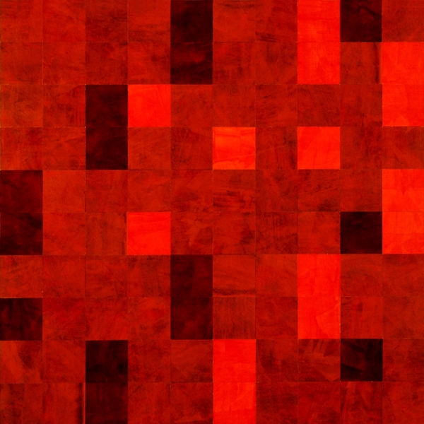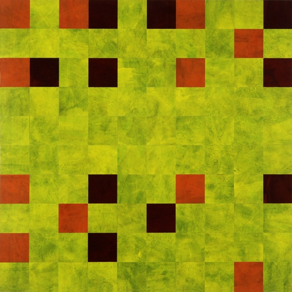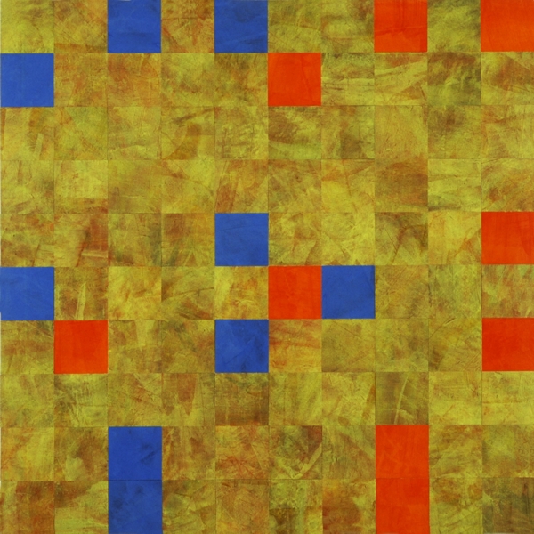 (urspr. "Trio") Malerei auf Holz (Acryl/Wachs), Holzquadrate parkettartig zusammengesteckt (Nut und Feder), 60 x 60cm, 11 Arbeiten 1999