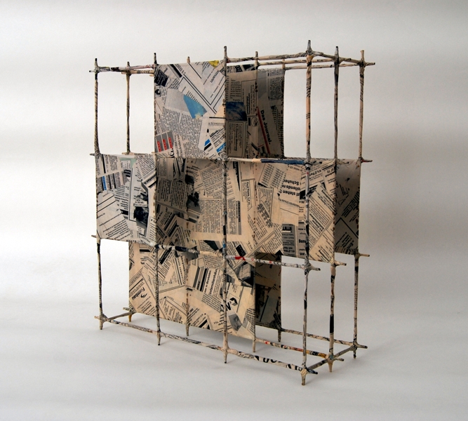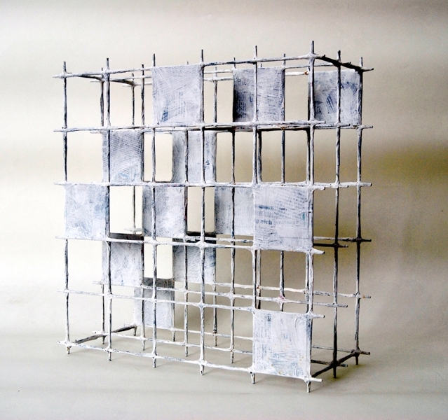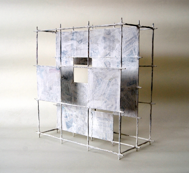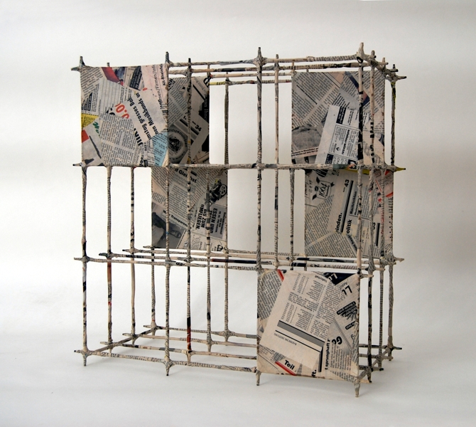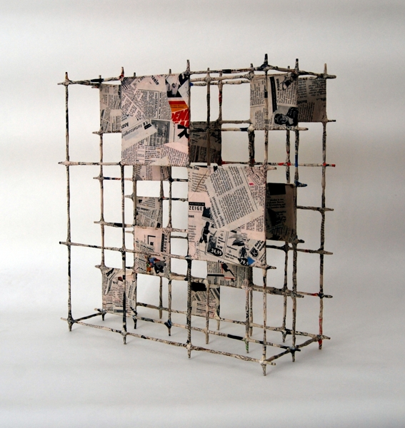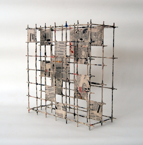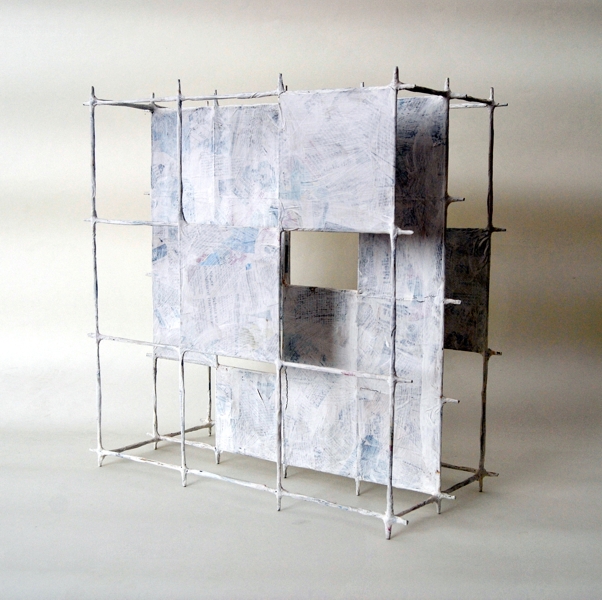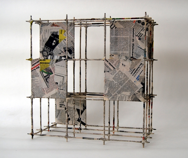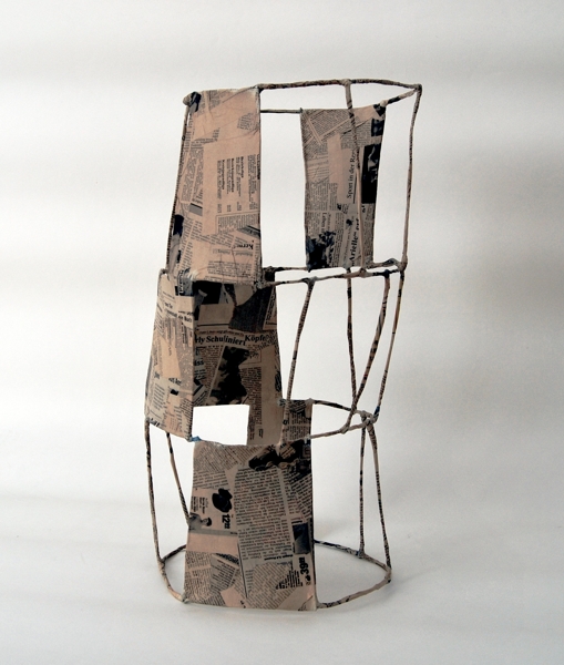 Draht, Zeitungspapier, Acryl, 50 x 50 cm / Tiefe verschieden, 8 Arbeiten 1998