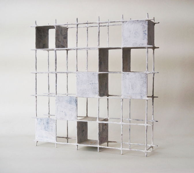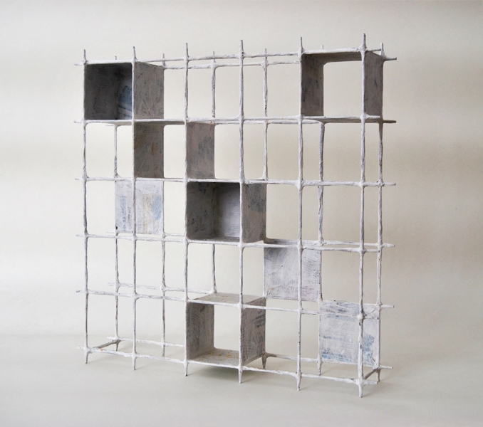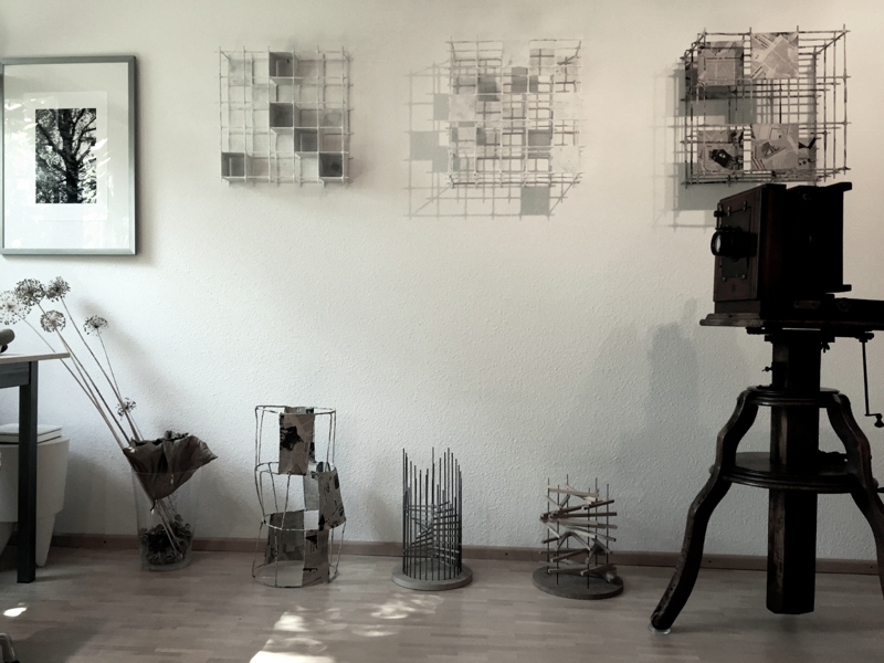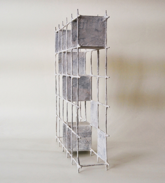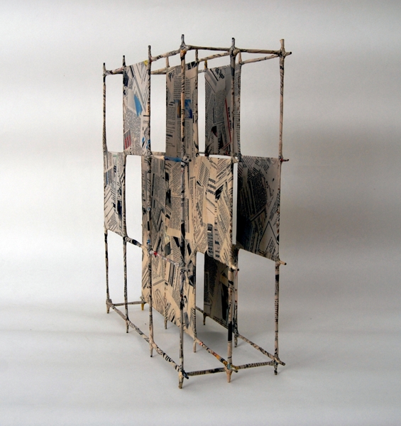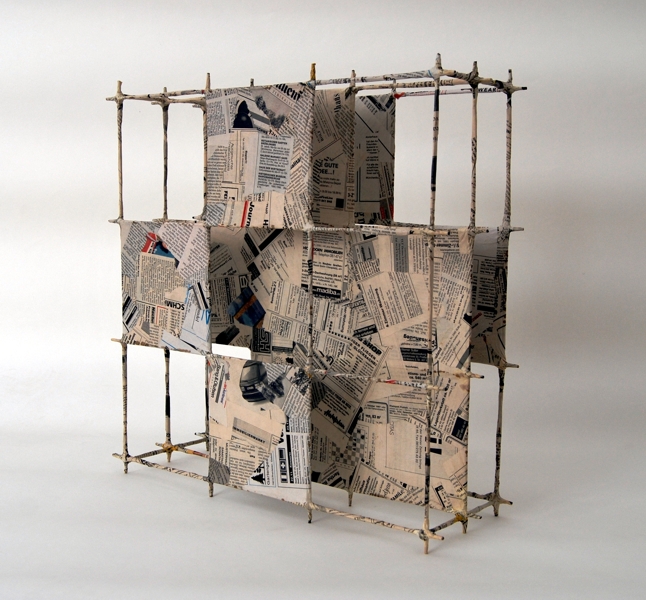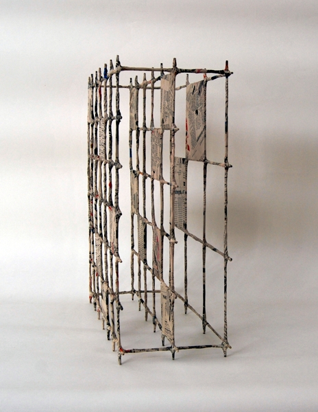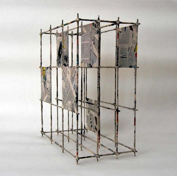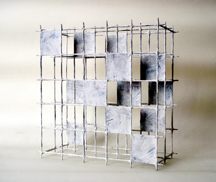 Draht, Zeitungspapier, Acryl, 50 x 50 cm / Tiefe verschieden, 8 Arbeiten 1998