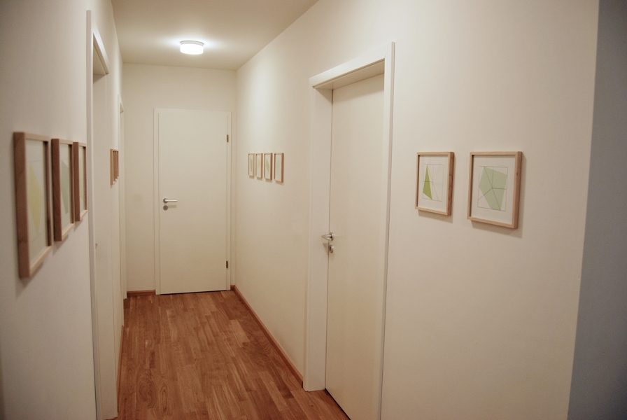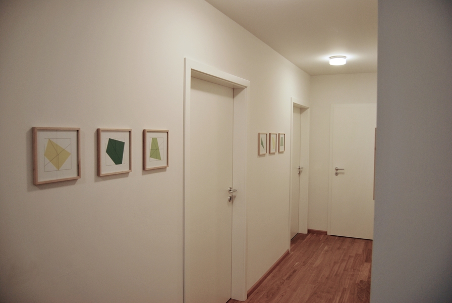 Installation (Wandmalerei, Schnur, Nägel, 120 x 120 cm oder Graphik 21 x 21 cm,