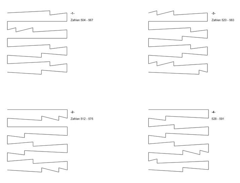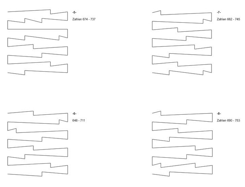 Minimal Melody op.51: 1989 gehörten die Minimal Melodies zu den ersten Arbeiten in denen Primzahlen Verwendung fanden und zwar deshalb, weil Zählprozess, bzw Zahlenstrahl und Schnur ganz einfach gut zusammen passten. Insofern waren die Minimal Melodies op.51 immer als Wandinstallation mit Hanfschnur und Nägeln gedacht. Einige wenige Ausführungen gab es mit schwarzem Wollfaden im Rahmen. Die Wandinstallationen waren auch als Set-Schachtel zur Eigeninstallation erhältlich. Die systematische Aufarbeitung der Idee geschah 2001.