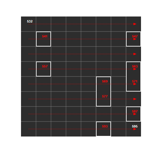 Primzahlen: Quadrate schwarz, Rahmen weiss