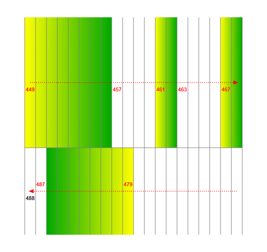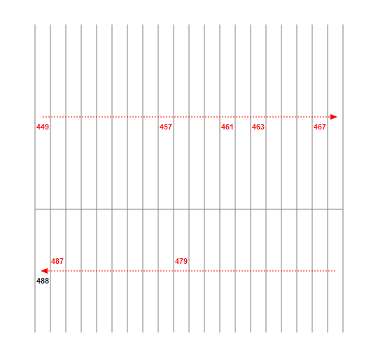 bei einer Primzahl, Wechsel von horizontalem Verlauf zum Hintergrund und umgekehrt