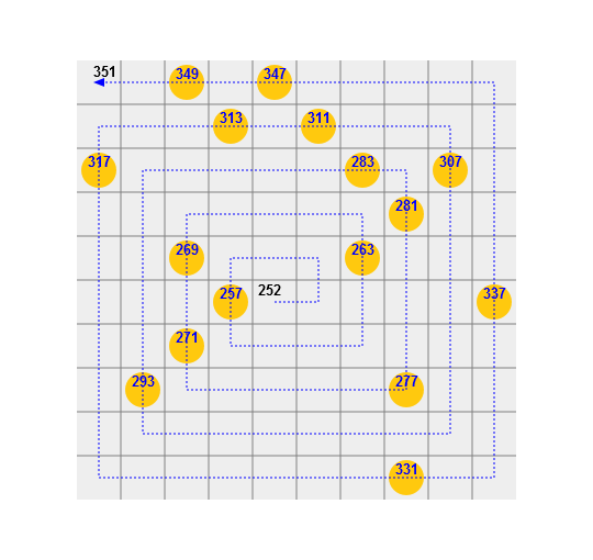 Zahlenfeld vorne 10 x 10, 252 - 351