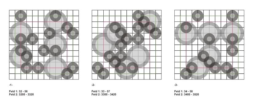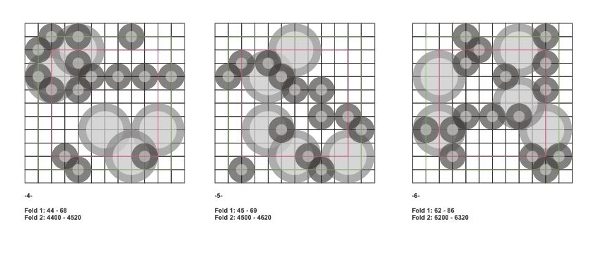 Zeichnung auf Papier, 60 x 60 cm, 6 + 4 Arbeiten 2002