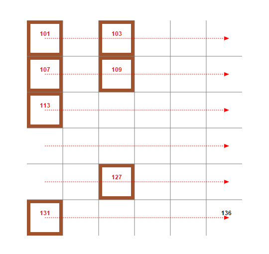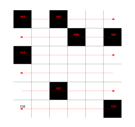 Primzahlen: schwarze Quadrate