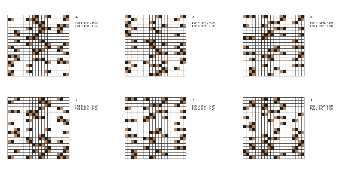Zeichnung und Collage auf Papier, 50 x 50cm, 6 Arbeiten 2005